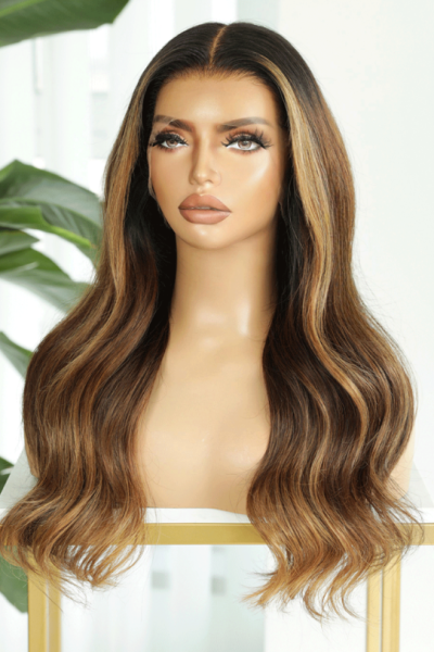 باروكة كاثي شعر طبيعي فروة HD طول 22 انش كثافة عالية