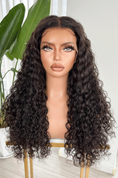 باروكة شعر طبيعي مموج فروة HD طول 20 انش كثافة عالية